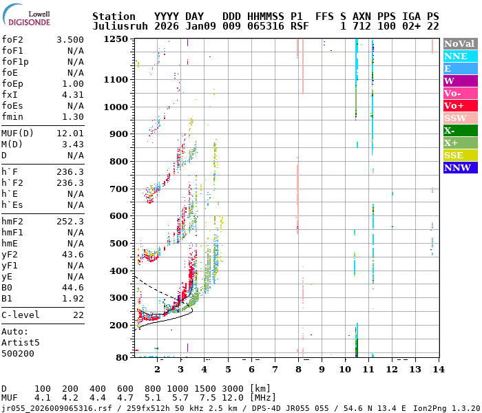 | JR055 MUF-Table 08.01.2026 - 09:45 UT Confidence level: 0 (11-very good, 55-poor) | |